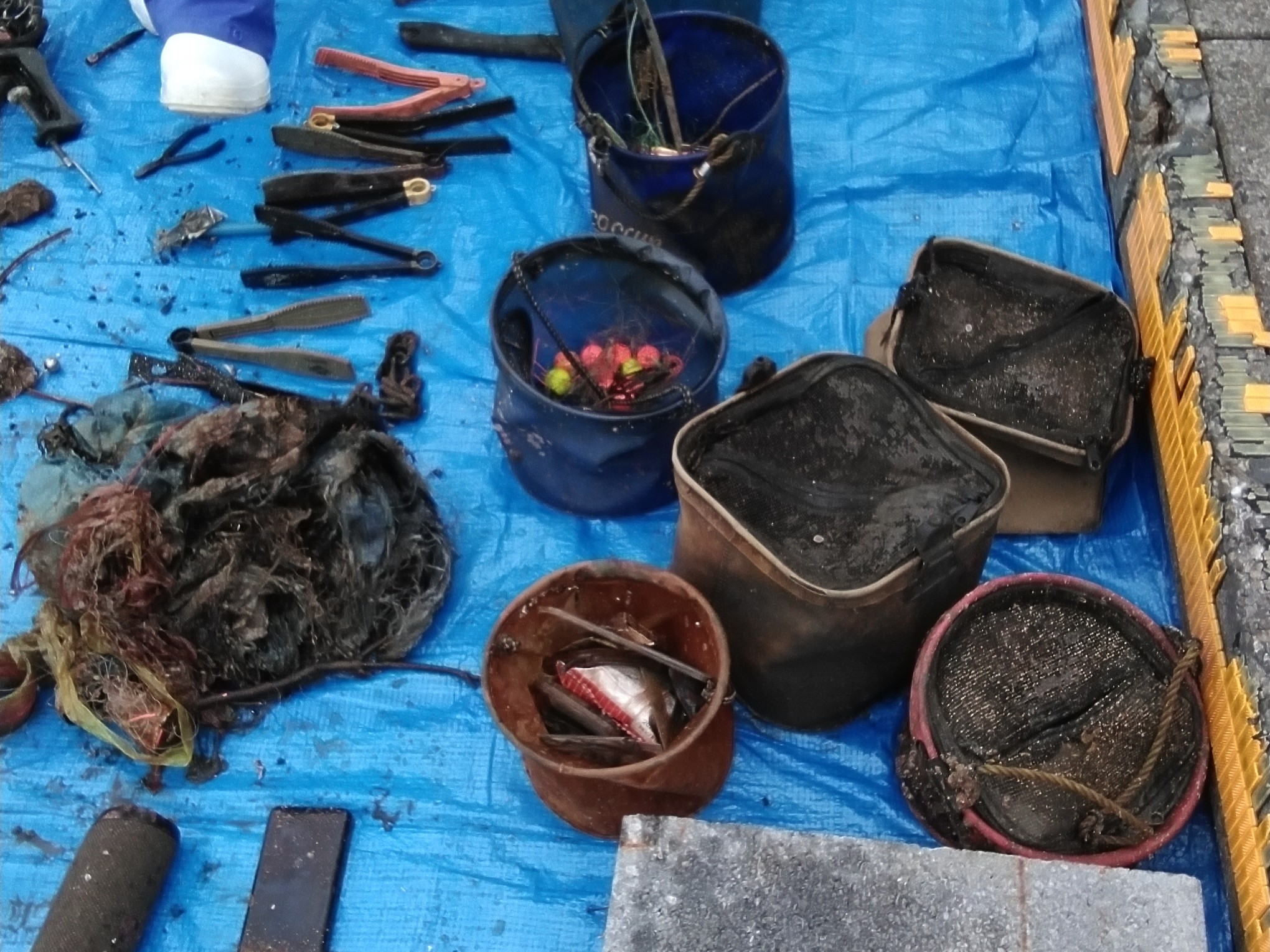 釣竿・ロッドホルダー・重り・ハードルアー等々の釣具を中心にゴミを回収した。